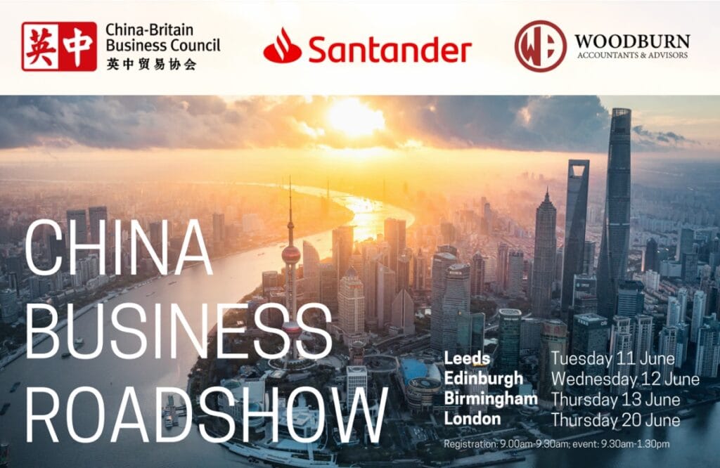 This June, the China Business Roadshow from the China-Britain Business Council, Santander and Woodburn Accountants & Advisors – featuring contributions from CBBC’s comprehensive network of members – will visit four cities across the UK: Leeds, Edinburgh, Birmingham and London.