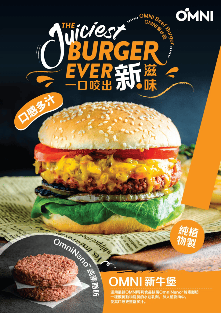 An ad for Omnifoods’ plant-based ‘beef’ burger