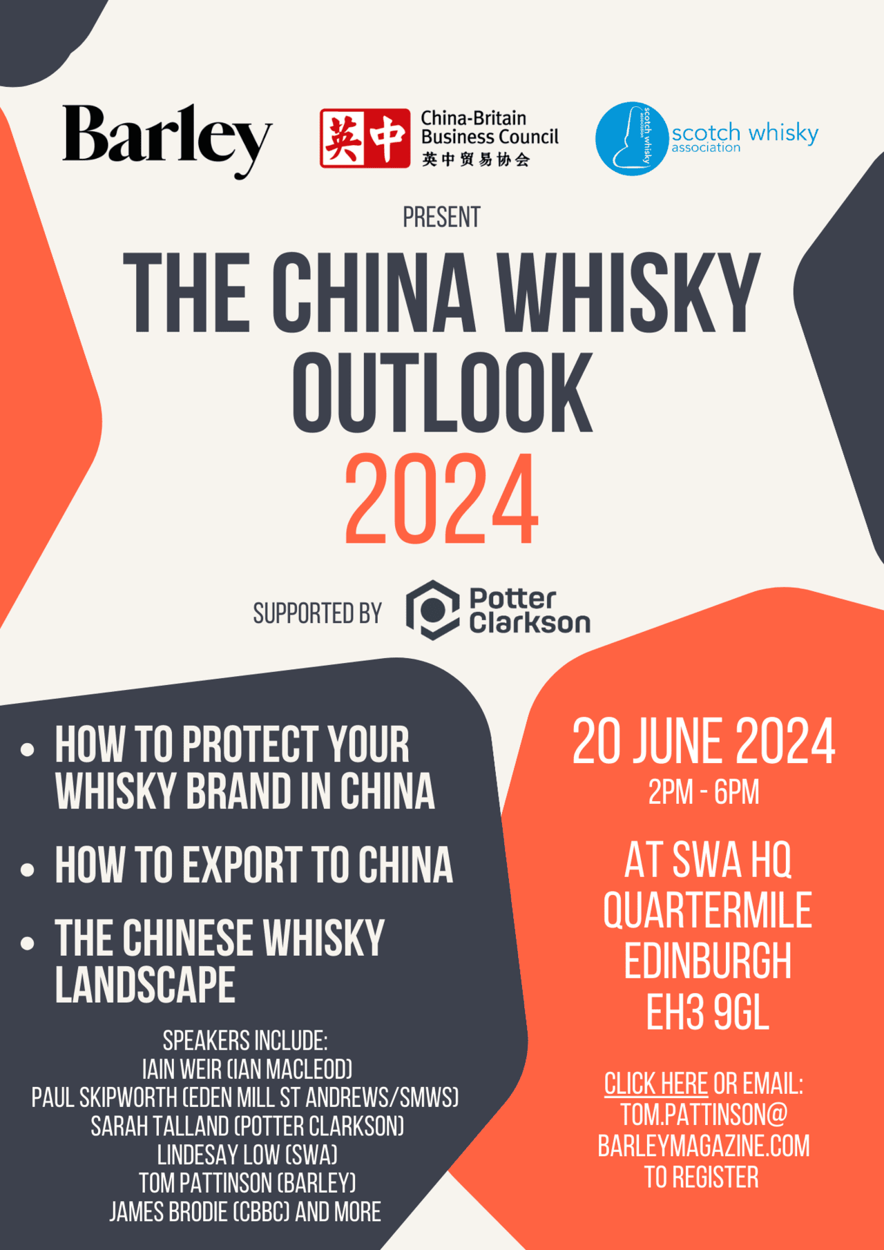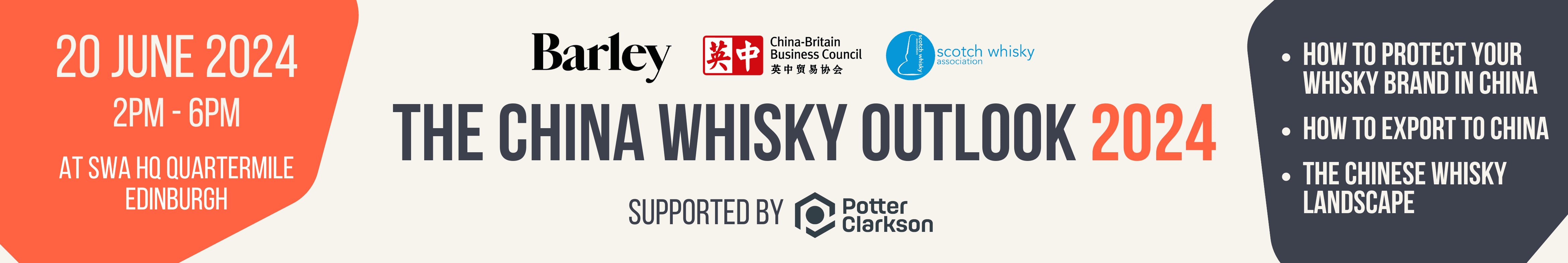 The event will be held in Edinburgh on 20 June 2024 in partnership with Potter Clarkson and will cover topics including how to protect your Scotch Whisky brand in China, how to export your whisky to China, and the Chinese whisky market landscape.