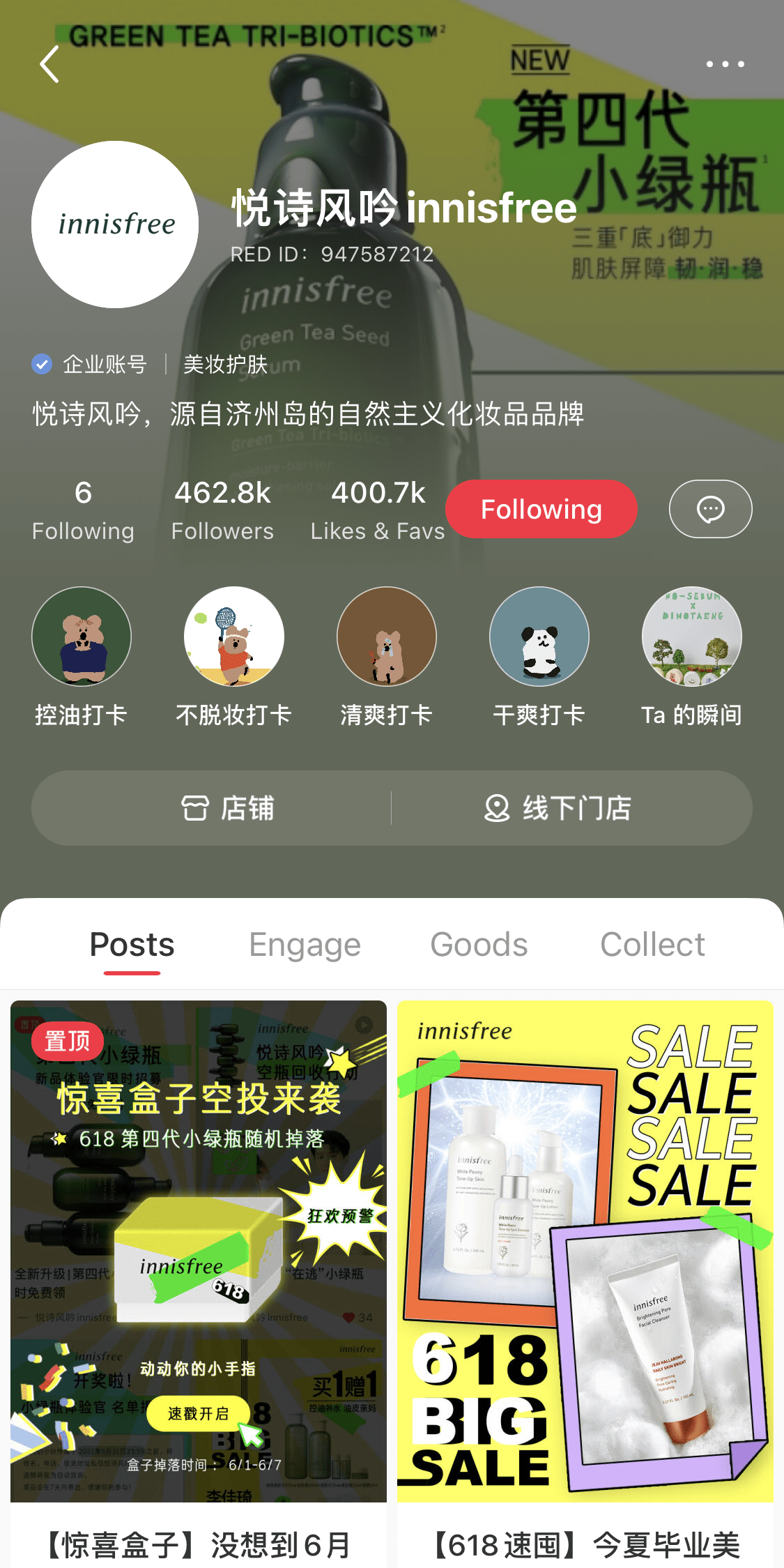 Korean brand Innisfree’s home page on Xiaohongshu