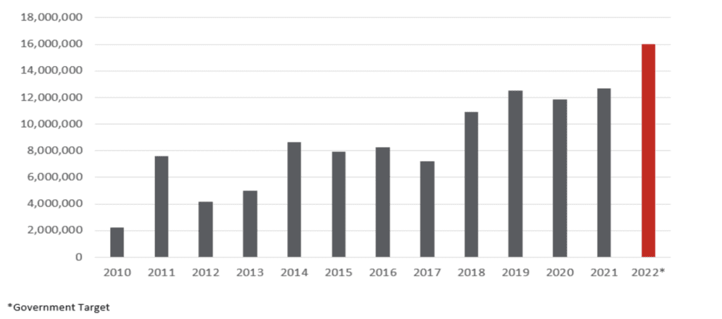 New urban jobs added annually (Source: National Bureau of Statistics)