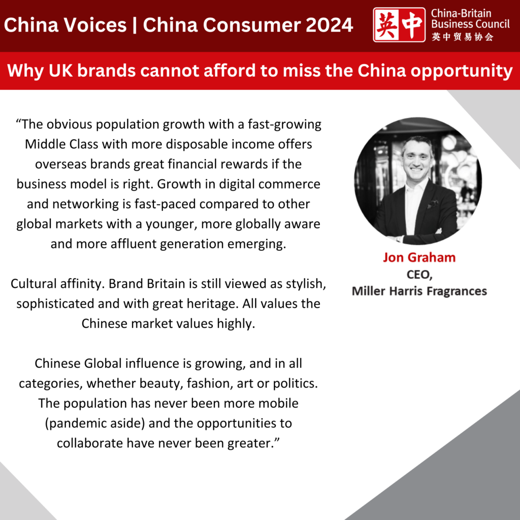 In this article, Zarina Kanji, Managing Director for UK & Europe at WPIC Marketing + Technologies; Ben Grass, Founder and CEO of Grass & Co; Nick Stratton, General Manager International for Nurture Brands; and Jon Graham, CEO of Miller Harris Fragrances share why UK brands cannot afford to miss the China opportunity.