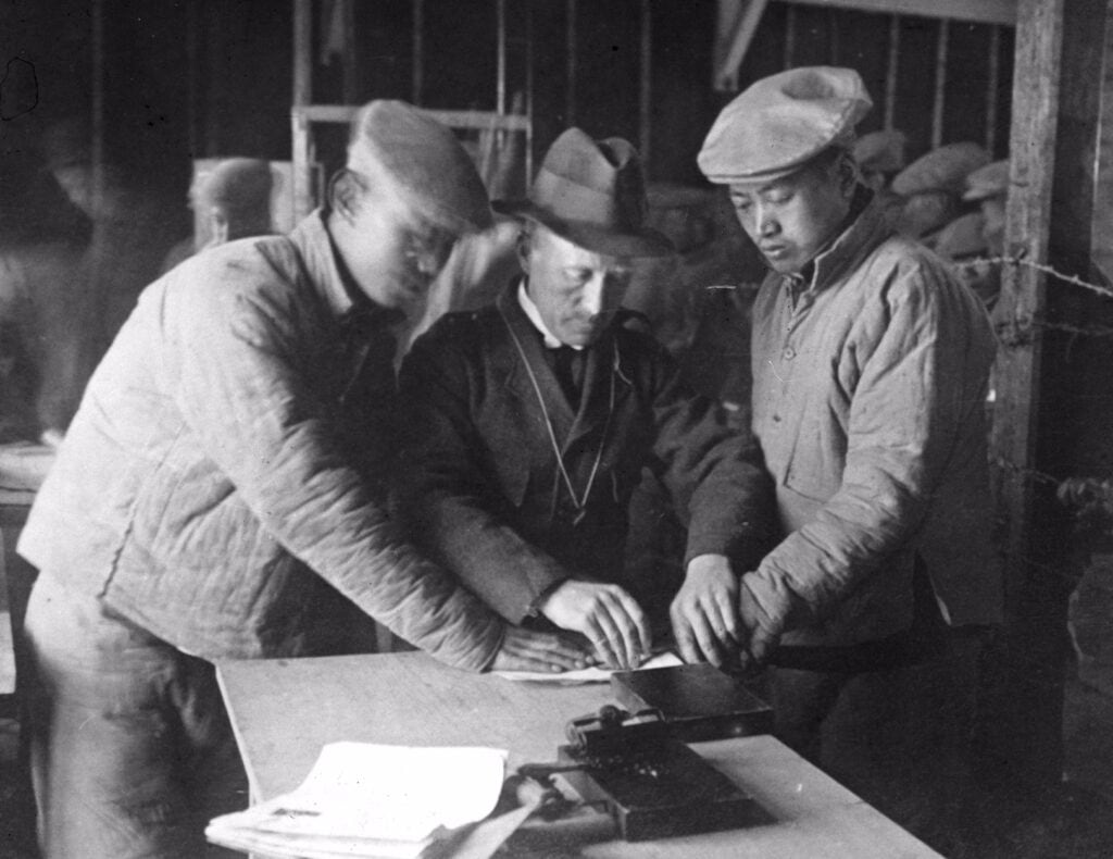 Chinese recruits being fingerprinted