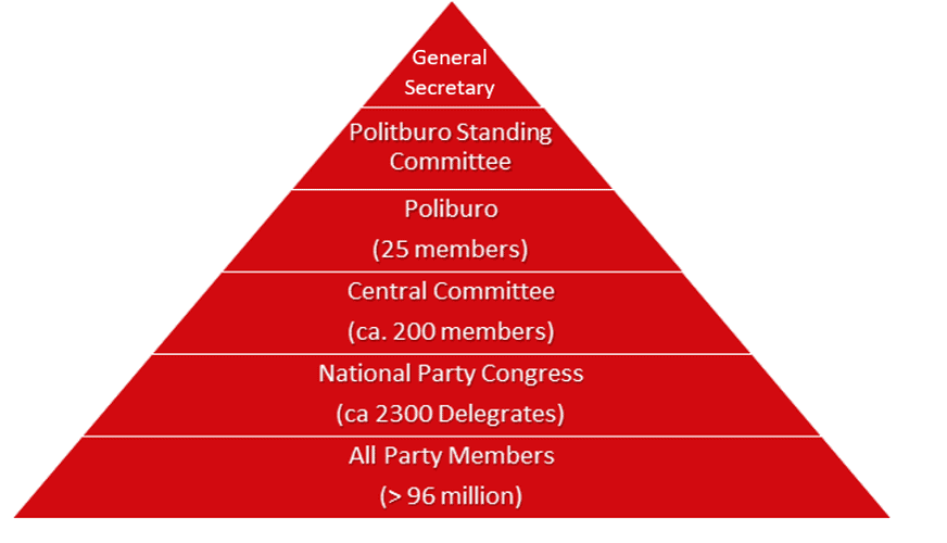 During the National Congress, there will be further selections, including the membership of the Standing Committee. This – which includes the General Secretary – is the executive committee of the Politburo, which itself counts 25 members. Below the Politburo sits the CCP’s Central Committee (approx. 200 members), a sort of Party Parliament, that comprises the powerful Central Military Commission and the Central Commission for Disciplinary Inspection.