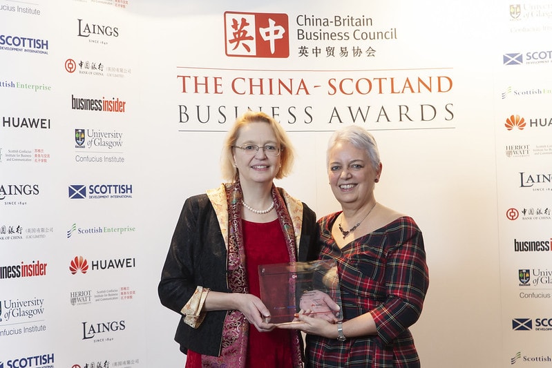 Professor Natascha Gentz, who is Assistant Principal (China), Chair of Chinese Studies and Director of the Confucius Institute for Scotland, picked up last year’s award for Innovation in Education on behalf of of the Donghua–Edinburgh Centre for Creative Industries (DECCI).