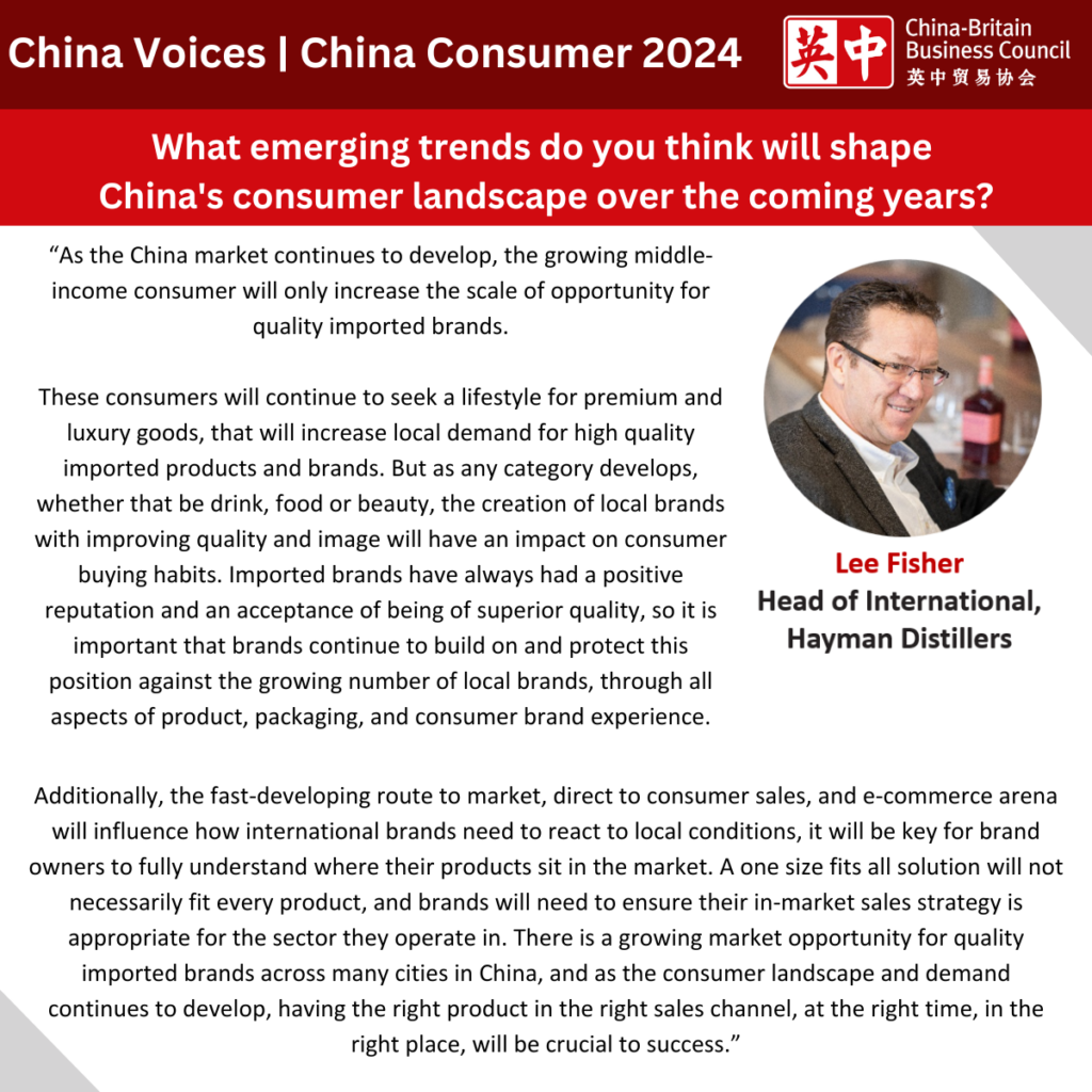 In this article, Lee Fisher, Head of International, Hayman Distillers; Daisy Ip, Head of Investment Promotion, InvestHK; and Celine Tang, Retail & E-commerce Sector Lead, China-Britain Business Council share their insights on the latest trends that are shaping China’s consumer market.