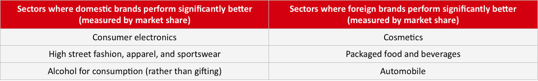 Chinese consumers still want to buy British, but consumers only prefer to buy foreign goods in certain sectors. In sectors where quality or safety are important, such as cosmetics, food and beverages for infants, and the automotive industry, foreign brands retain a significant lead in market share.
