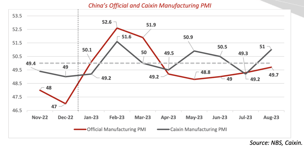 The spike in manufacturing PMI earlier in the year was probably due to the initial momentum caused by the lifting of Covid-19 controls in December 2022, as well as factories fulfilling a backlog of late orders that had not been completed due to 2022 disruptions, while the subsequent depression in manufacturing orders has been mostly due to low global and domestic demand.
