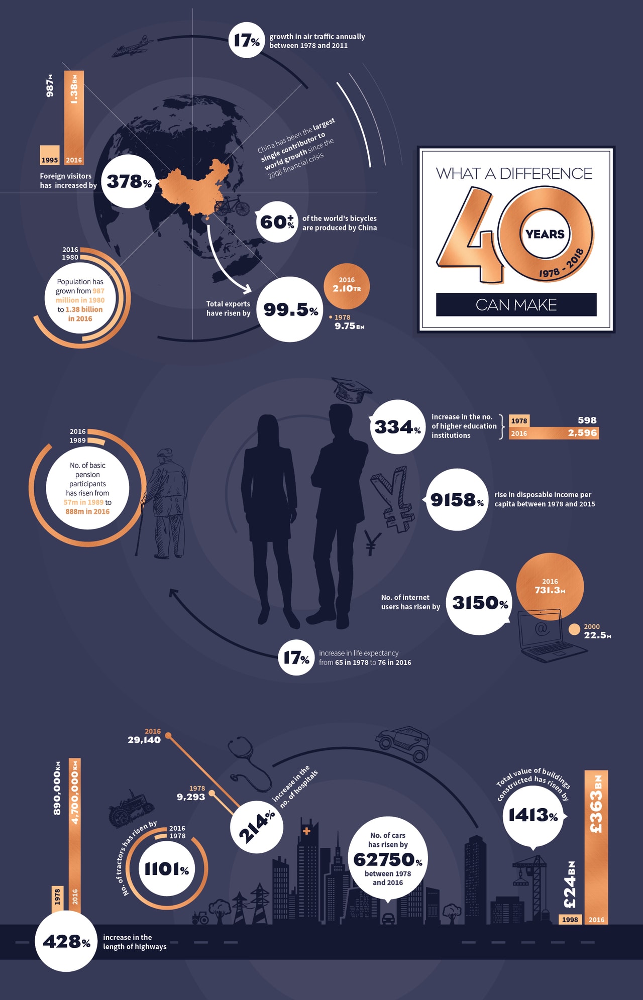In December 1978, China’s leader Deng Xiaoping, announced that China would start a period of ‘Reform and Opening Up’. This policy sees a de-collectivisation of agriculture, allows foreign investment into the country, and permits entrepreneurs to set up private businesses. By the early 1990s, certain policies and regulations were lifted and state-run businesses were privatised allowing the private sector to boom. The transformation was, as Lord Michael Heseltine says “on a scale without human precedence.”