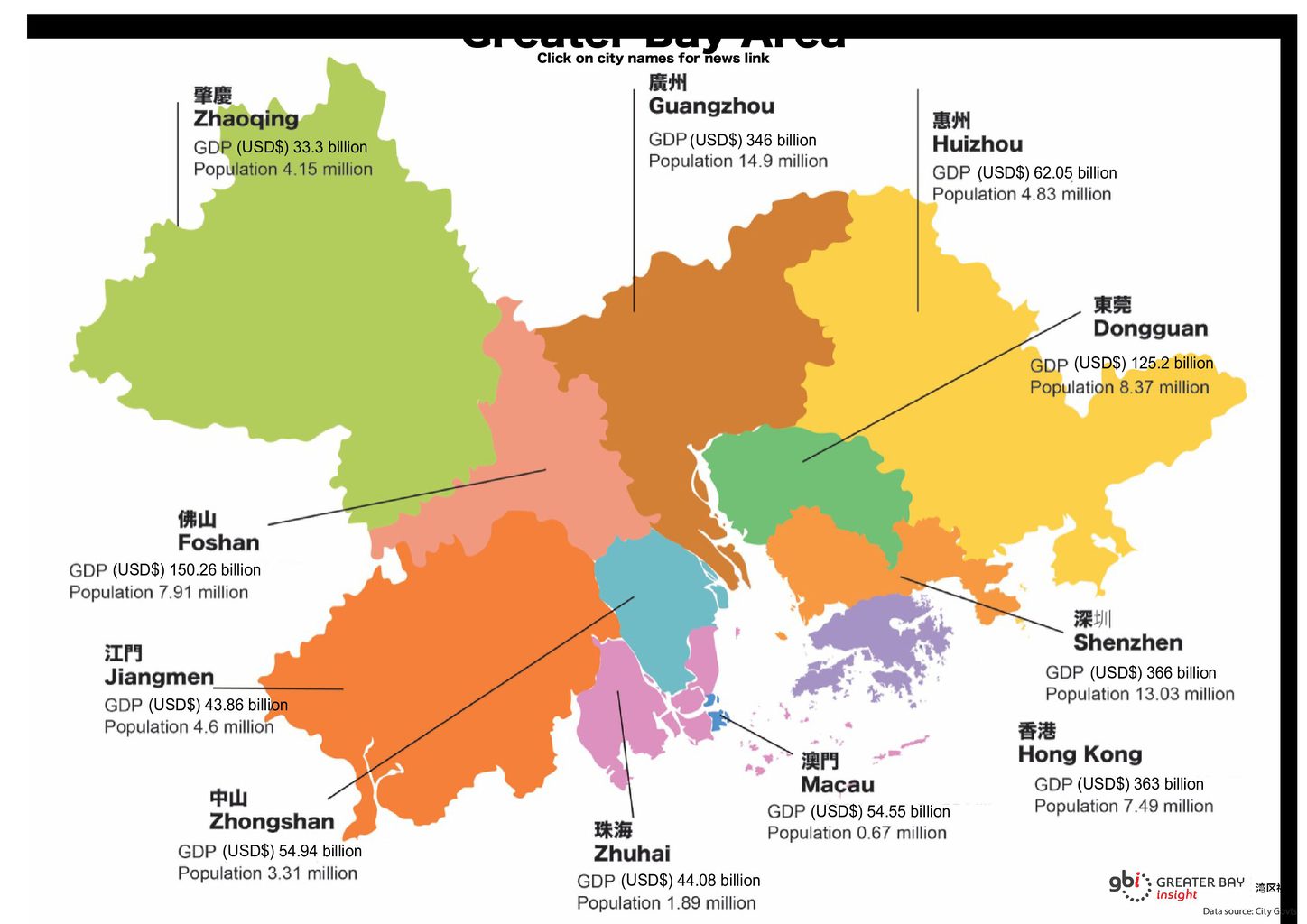 - The GBA is the world’s workbench. Factories in the GBA contribute over 10 percent of China’s manufacturing output. Adding value of over £390 billion in 2017, the region produces more goods than South Korea and almost twice as much as the entire UK.